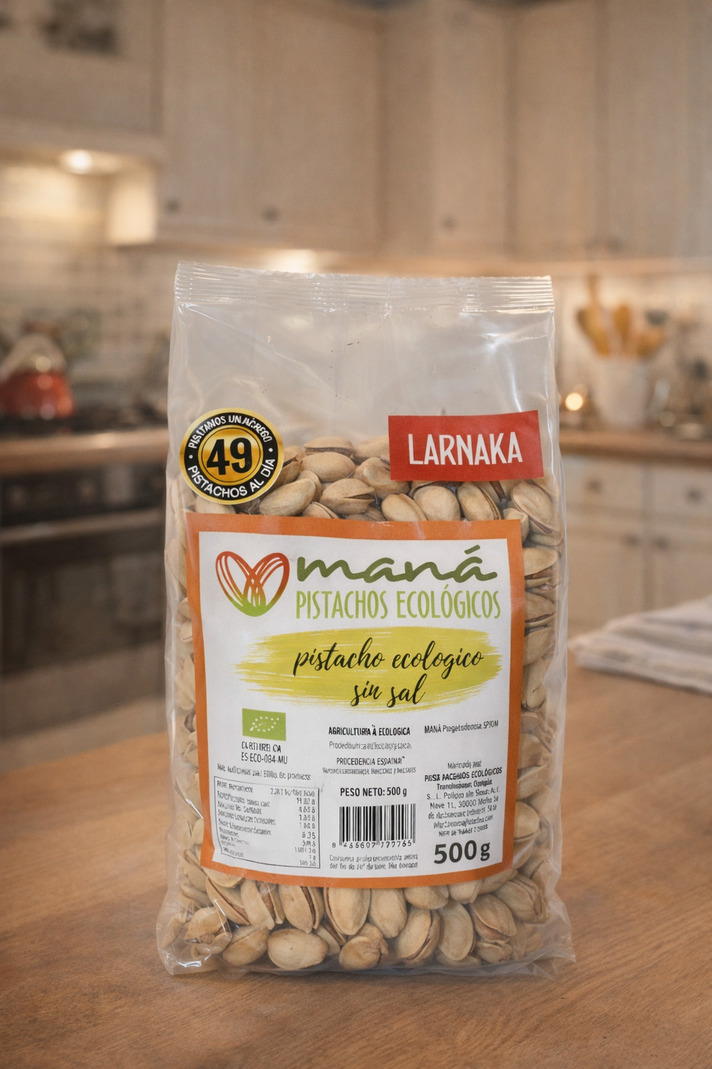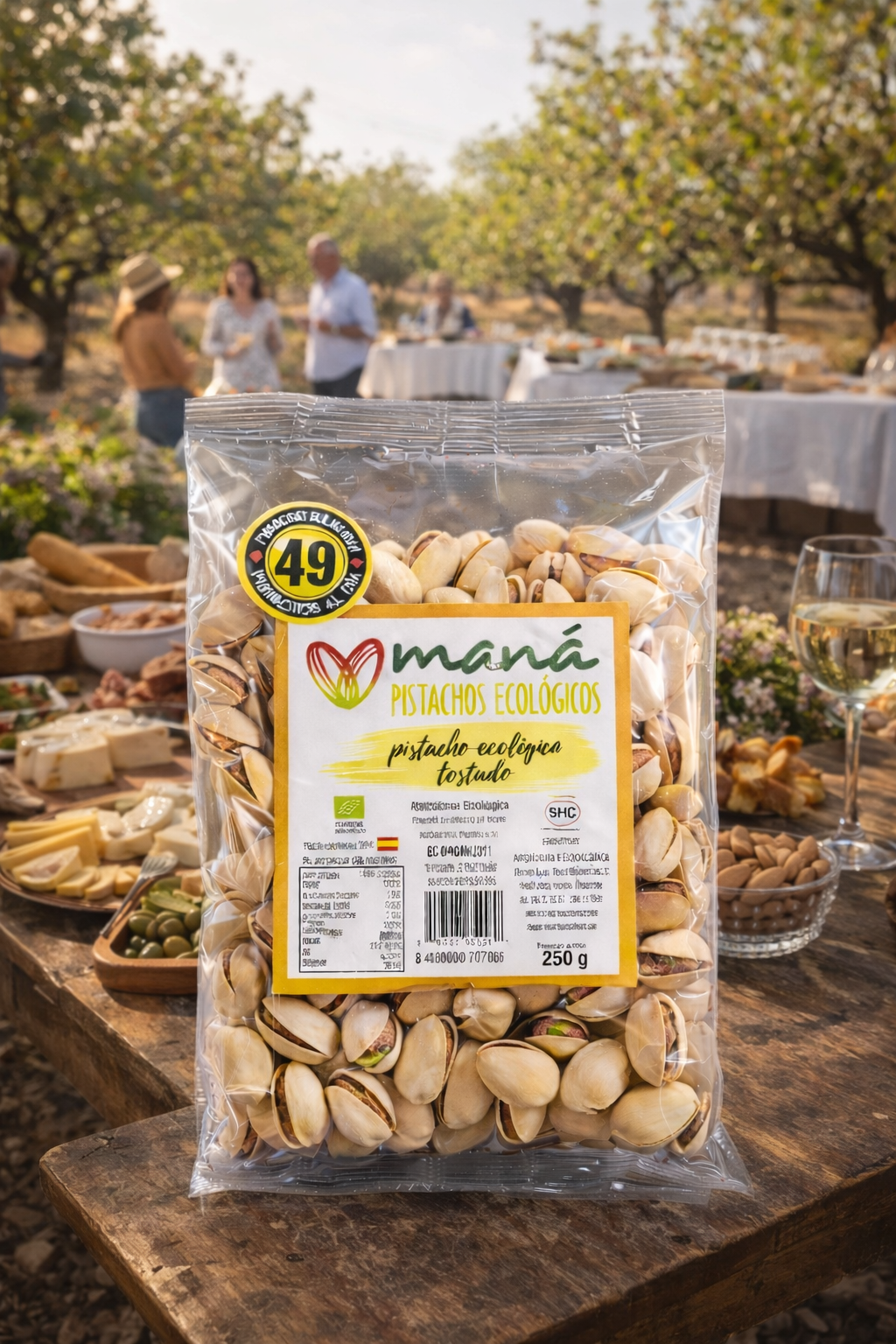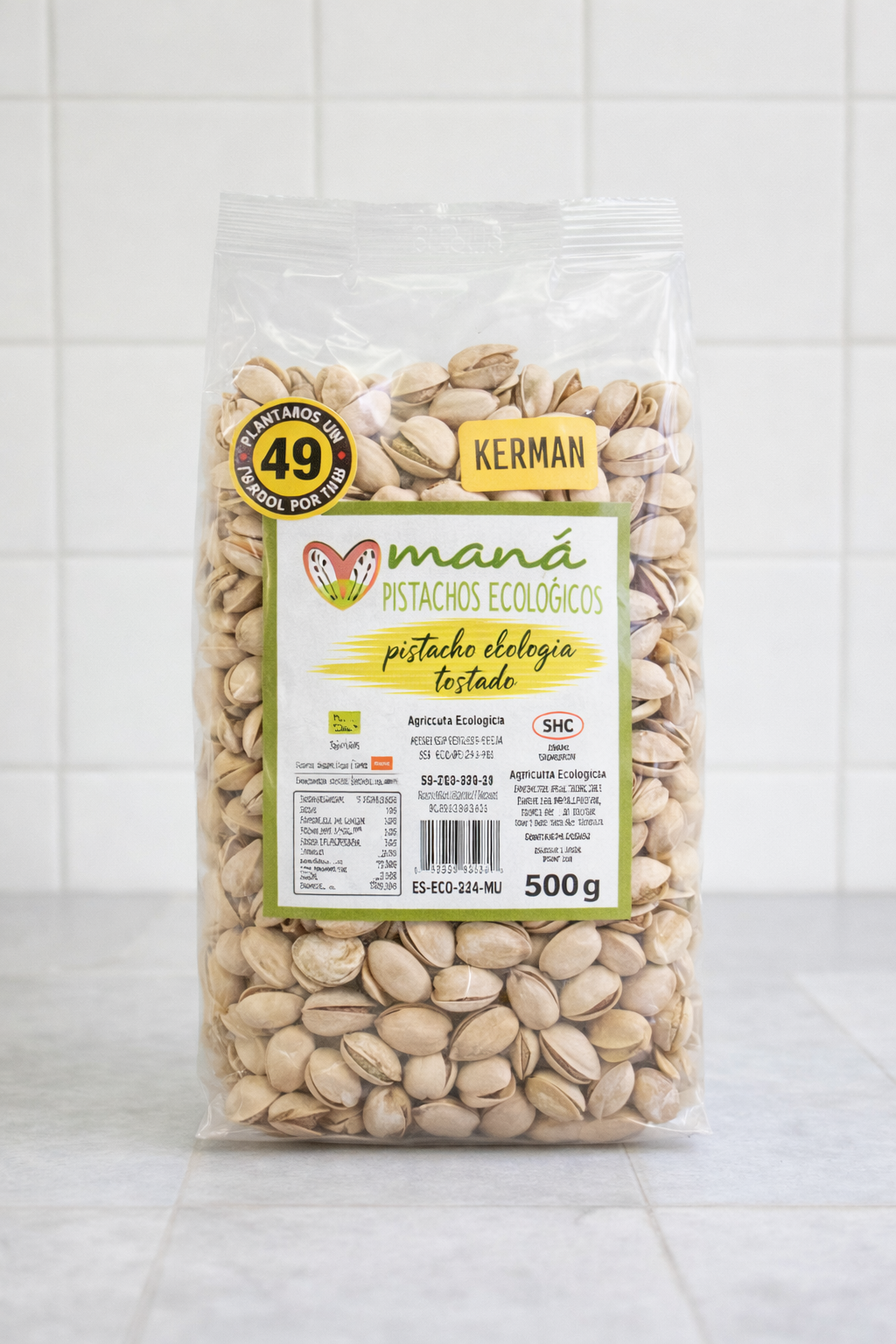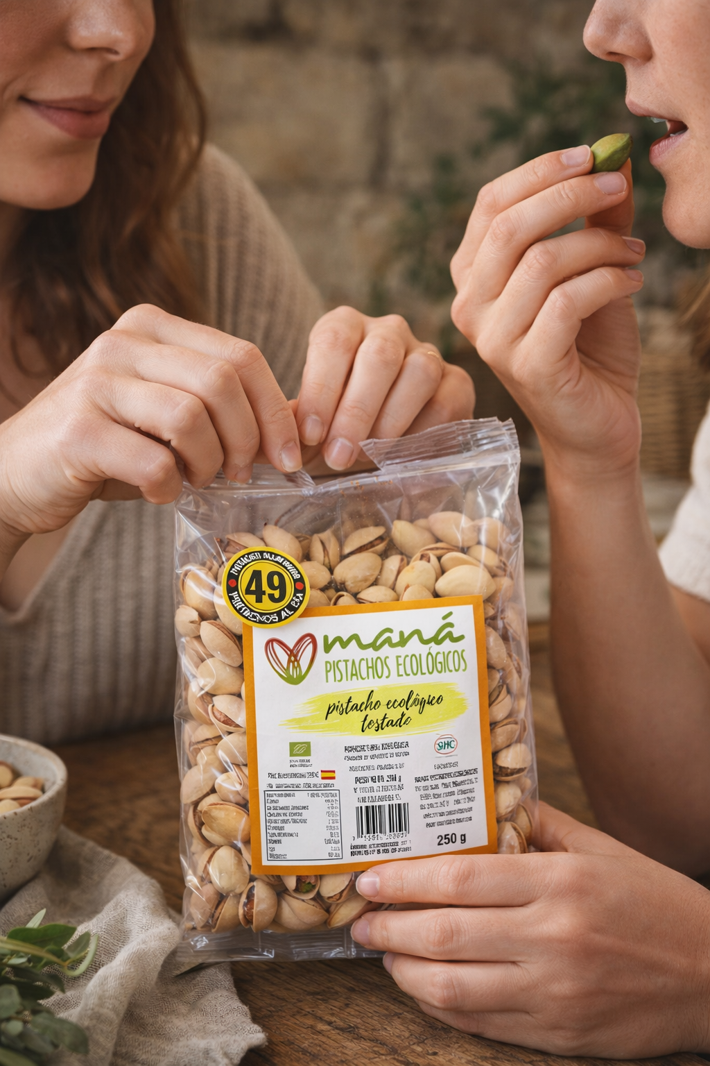 Pistachos ecológicos tostados, elaborados por Maná Pistachos