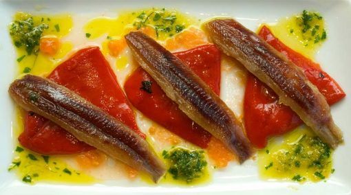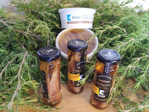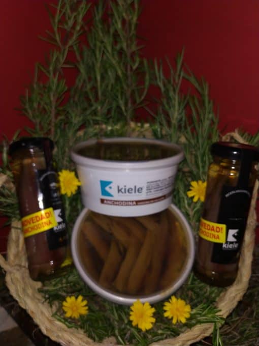 La Anchodina es el lomo de la sardina que se limpia a mano una a una quitando la piel y las espinas y tras ser sazonado se seca durante unos días conservándose en aceite.