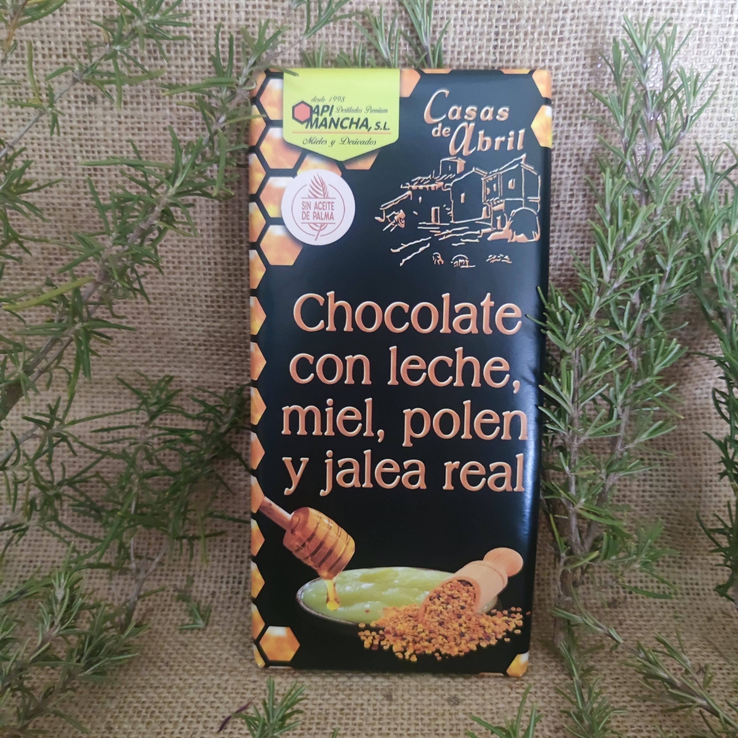 Chocolate con leche, miel, polen y jalea real, elaborado por Apimancha, SL